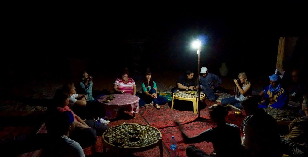 This was by far my favorite part of the trip. We drove out to the edge of the desert in Merzouga, climbed onto our camels, and rode out to a campsite among the sand dunes. When we first arrived, a few of us climbed the sand dune directly behind our tents, which was no easy task. After assuming we were going to pass out and die numerous times, we finally reached the top to a rewarding view of the last hints of sunset and the moon rising. It lit up everything, and gave the usual copper sand a very milky tone. Once back down, we were served traditional food and drink and participated in some regional music with drums a few locals brought. It was a pretty magical night filled with great company and no worries.